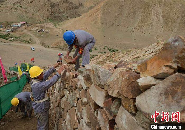 中新网巴彦淖尔7月1日电 (记者 张林虎)“小佘太秦长城修缮工程主要是对城墙本体进行加固,难点就是要做到修旧如旧,工人们都是用人背、肩扛的方式,把修筑材料从山脚下背到长城上面。”7月1日,内蒙古自治区巴彦淖尔市乌拉特前旗文物管理所所长胡怀峰如是说。