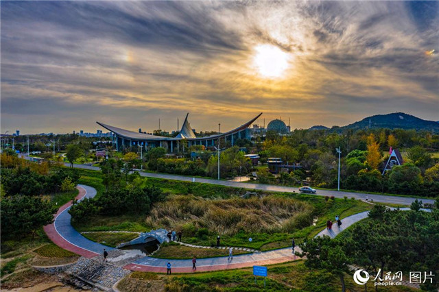 9月28日,航拍镜头下的山东省日照市阳光海岸绿道桃花岛段。全长28公里的日照市阳光海岸绿道,主要包括跑步道、自行车道、飘桥等绿道基础设施建设,沿途绿化提升,违章建设拆除,配套公共服务设施等建设内容,整个绿道有机串联了万平口景区、梦幻海滩公园、第三海水浴场、张家台游艇码头、李家台礁石公园、日照海滨国家森林公园、两城河口湿地等自然人文节点和旅游景区景点,市民和游客可以在阳光海岸绿道聆听阵阵涛声,享自然亲海空间,感受体育之魅,享受运动之美。人民网记者 史家民摄影报道