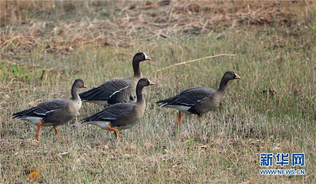 2020年11月1日 东洞庭湖迎来今年首批冬候鸟逾2万只。东洞庭湖国家级自然保护区里的白琵鹭(10月30日摄)。 新华社发(姚毅 摄)