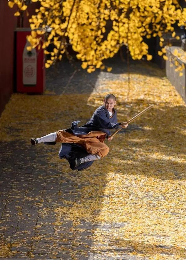 少林寺最大的一颗银杏树苍劲挺拔,已有1500多年历史。它高25米,冠幅达37米,它见证了少林寺的历史和发展。下面带领大家欣赏一组武僧们银杏树下习武美景图。