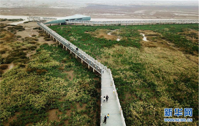 这是11月8日拍摄的闽江河口国家湿地公园。 闽江河口国家湿地公园位于福建省福州市长乐东北部闽江入海口,以河口浅滩为主,为闽江流域多年沉积形成的大片潮间沙滩和泥滩。这里是候鸟迁徙重要越冬地、水鸟集中分布区和众多珍稀濒危鸟种的栖息地,公园内动植物种类繁多,每年有数以万计的候鸟来此栖息越冬。 新华社记者 魏培全 摄