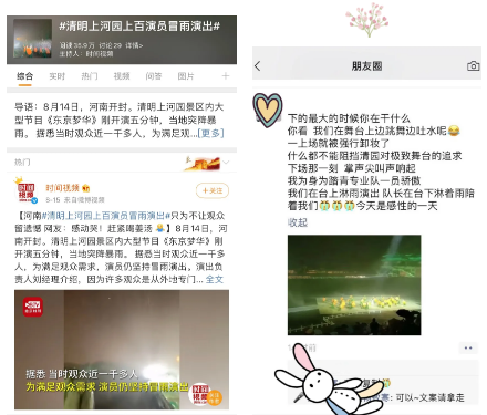 还记得8月14日的那场暴雨吗?还记得那条热搜话题#清明上河园上百演员冒雨演出#吗?