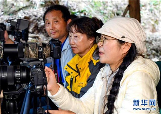 观鸟爱好者在永安市青水畲族乡丰田村观鸟(11月20日摄)。