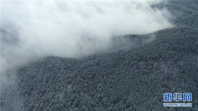 白雪覆盖的山脉在云雾中若隐若现,好似一幅泼墨山水画。新华网 发 (嘉栋 摄)