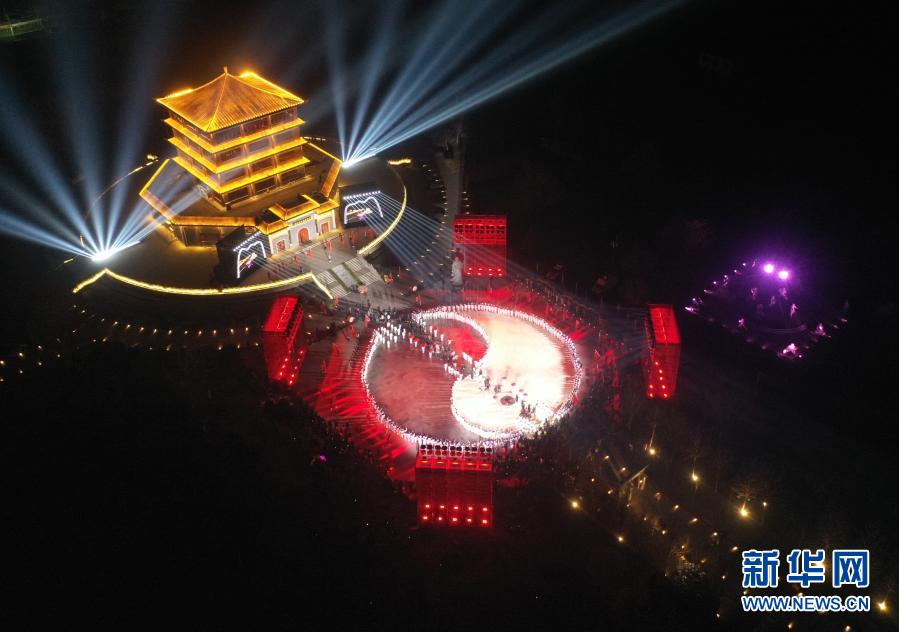 这是12月17日在河南省焦作市温县陈家沟拍摄的太极拳申遗成功庆祝仪式现场(无人机照片)。新华社记者 李嘉南 摄