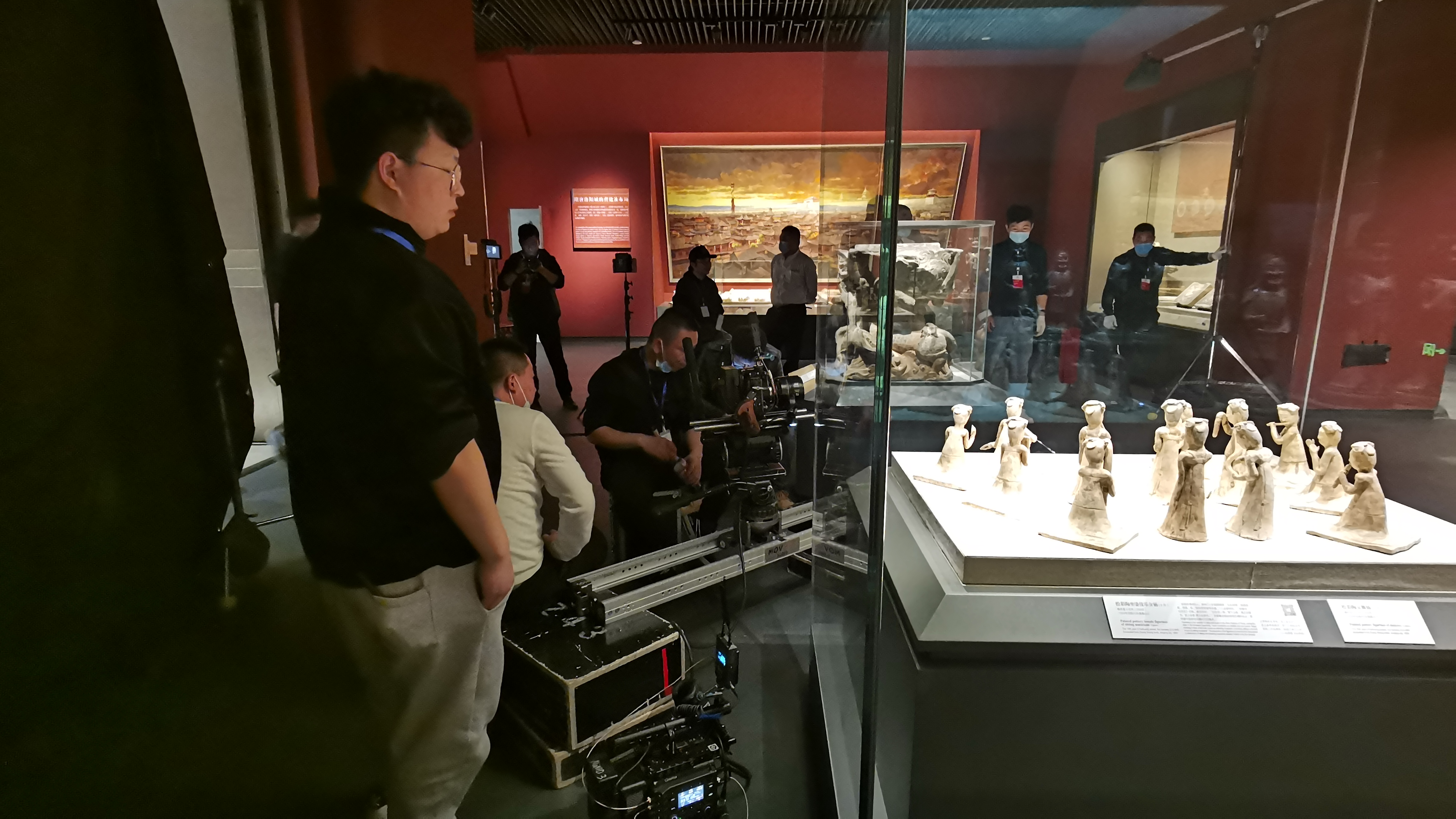 观众脑海中的画面即将成为现实。2月20日晚,顶端新闻·大河报记者在河南博物院隋唐馆看到,河南卫视元宵特别节目的工作人员已布好拍摄器材,静待拍摄。
