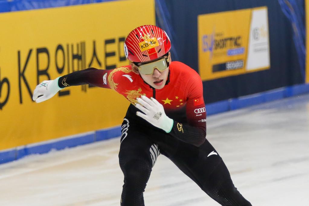 3月10日,中国选手林孝埈在比赛中。当日,在韩国首尔进行的2023年短道速滑世锦赛男子1000米预赛中,中国选手林孝埈以1分28秒174的成绩晋级四分之一决赛。新华社记者王益亮摄