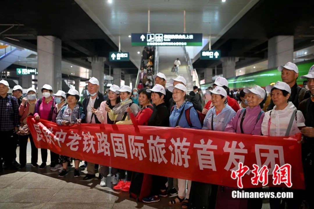 图为发车现场旅客合影留念。中新社记者 李嘉娴 摄