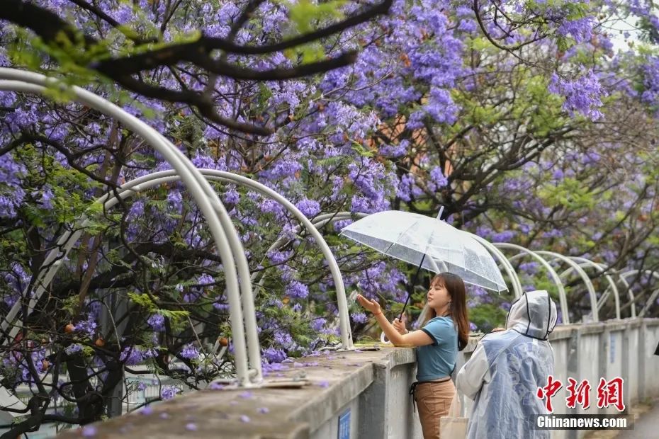 图为昆明街头蓝花楹盛放。中新社记者 刘冉阳 摄
