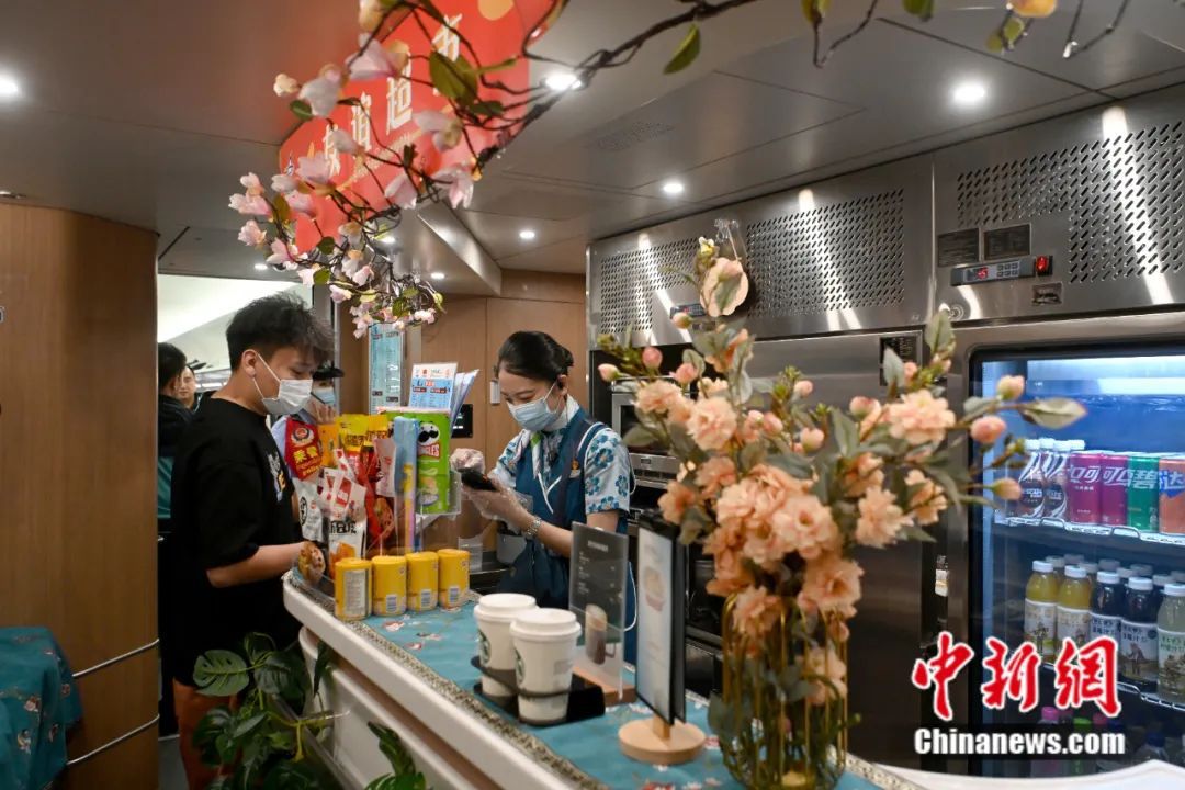 图为旅客在首发列车上点餐。中新社记者 李嘉娴 摄