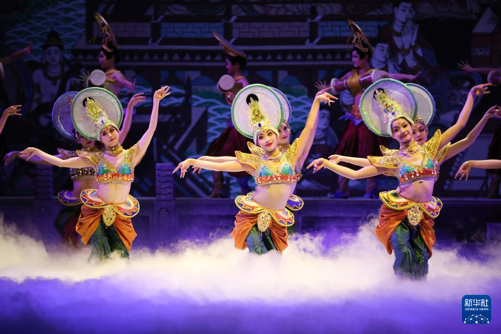 近日,中国经典舞剧《丝路花雨》在甘肃省兰州市的甘肃黄河剧院常态化驻场演出,甘肃省歌舞剧院的演员们演绎了优美动人的敦煌壁画舞姿。
