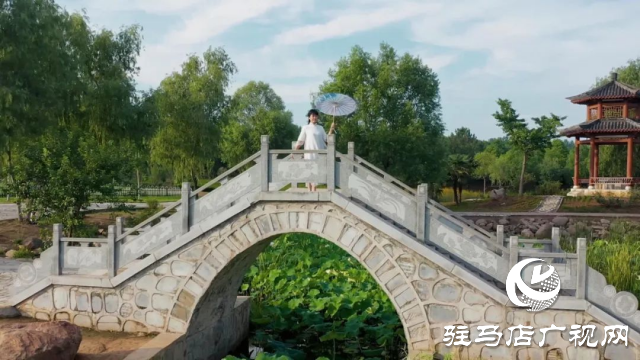 在泌阳县南高速路口的汉风公园,郁郁葱葱的绿树、满池清雅的荷花、锻炼的人们,与拱桥、凉亭、曲径通幽的小路相映衬,构成了一幅生态和美的画卷。