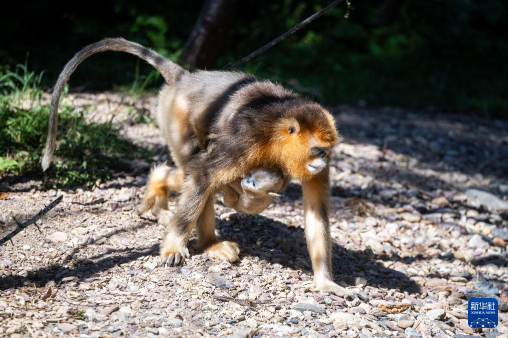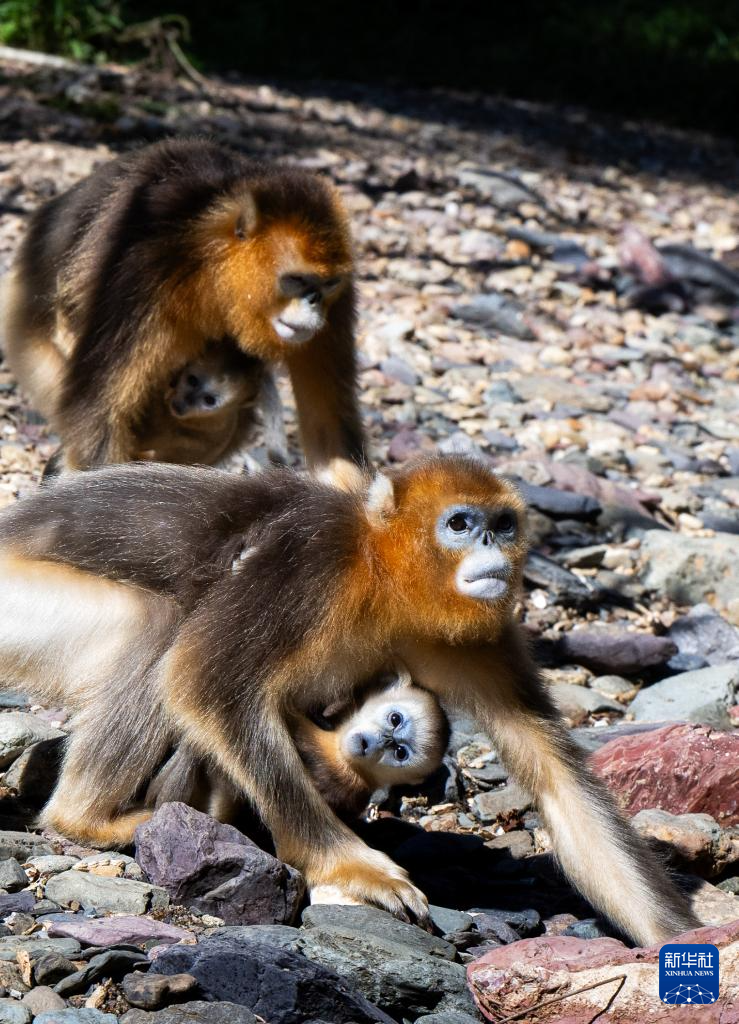 8月15日,金丝猴在神农架国家公园大龙潭金丝猴野外研究基地山林中活动。