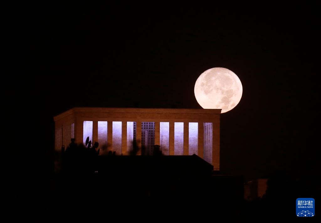 8月19日,在土耳其安卡拉,一轮圆月从凯末尔陵后缓缓升起。