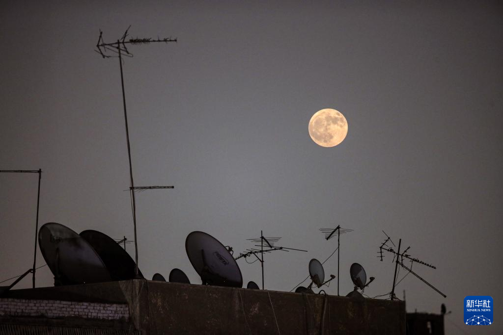 8月19日,一轮圆月悬于埃及开罗上空。