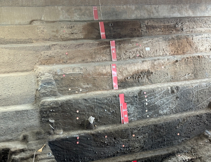 “没想到这个考古遗址竟坐落在繁华的闹市区中。”当州桥及附近汴河遗址东西两侧探方内不同时期桥摞桥、路摞路清晰层理映入眼帘,郑州大学伊拉克籍留学生阿尔沙蒂不禁感叹。