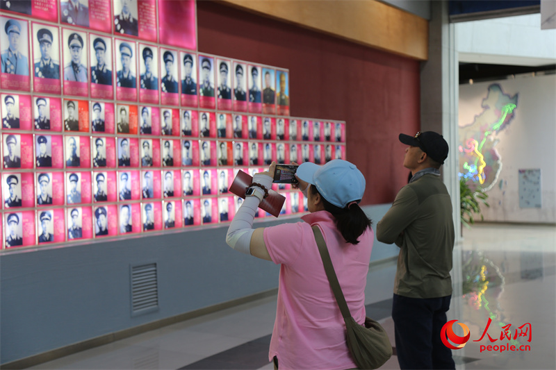 游客正在观看屯垦英模谱。人民网 李龙摄
