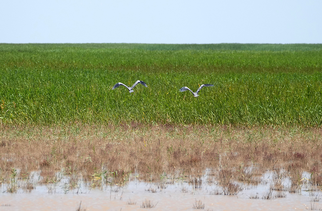 8月28日,鸟类在黄河三角洲国家级自然保护区湿地栖息。