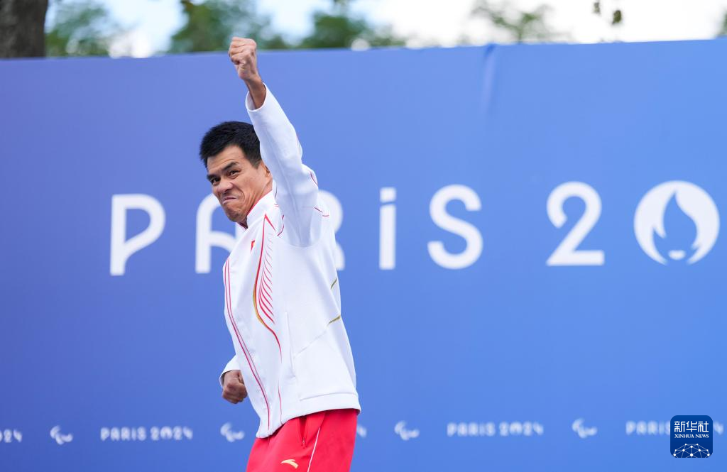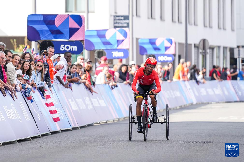 当日,在巴黎残奥会公路自行车男子个人计时赛T1-2级比赛中,中国选手陈健新以21分35秒78的成绩夺得冠军。