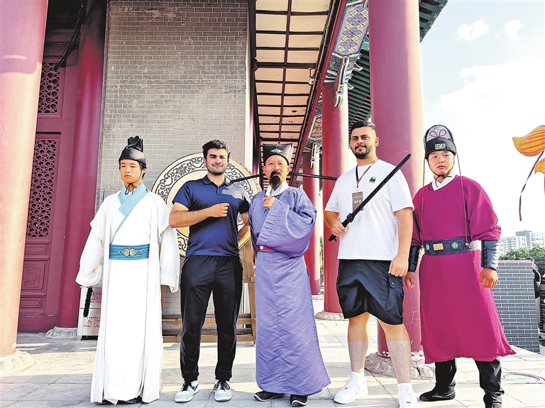8月19日,外国游客游览开封,感受大宋风情。本报记者 童林 摄