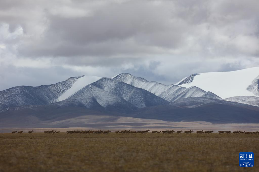 这是令戈错湖边的藏羚羊群(9月8日摄)。新华社记者 刘诗平 摄