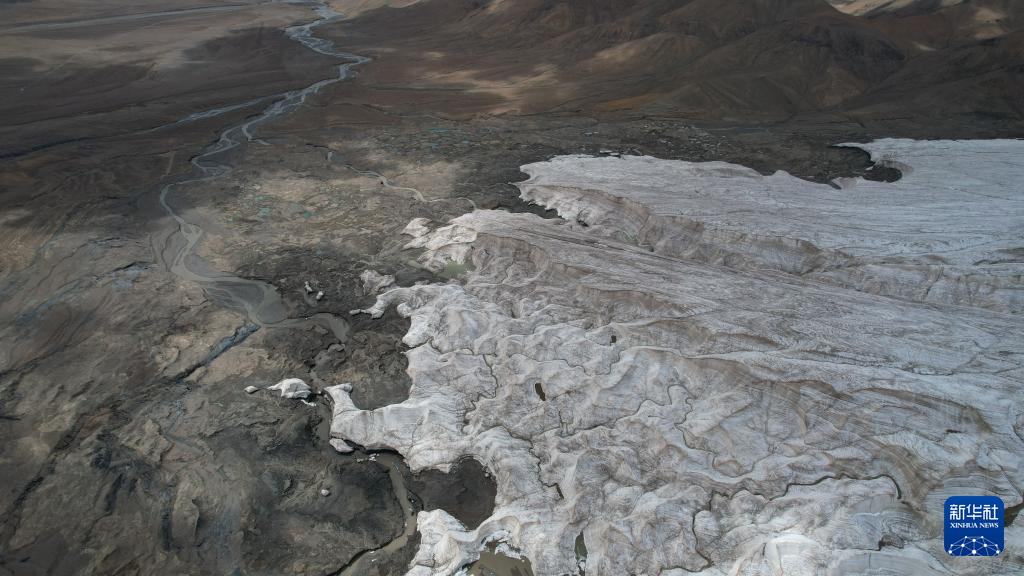 这是9月4日拍摄的普若岗日冰原8号冰川和冰川消融形成的径流(无人机照片)。新华社记者 刘诗平 摄