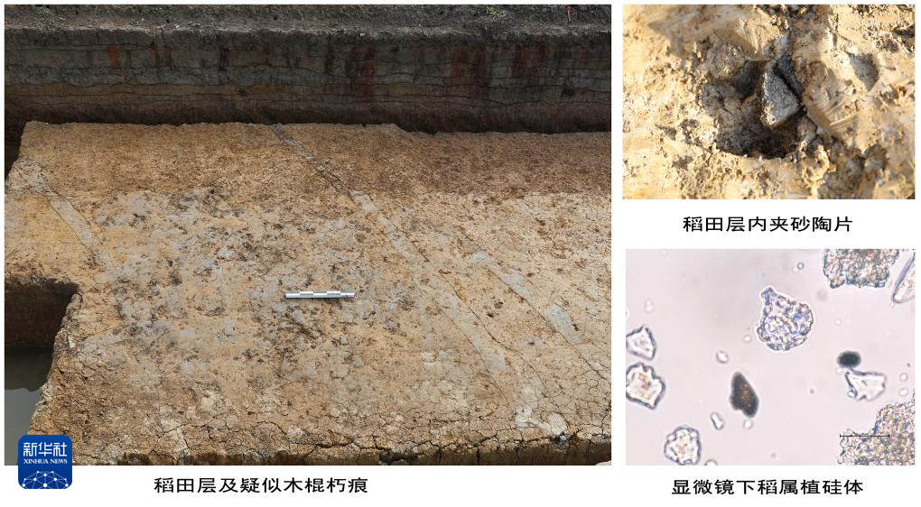 浙江衢州皇朝墩遗址早期稻田遗存及相关依据(拼版照片)。新华社发(国家文物局供图)