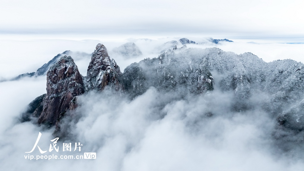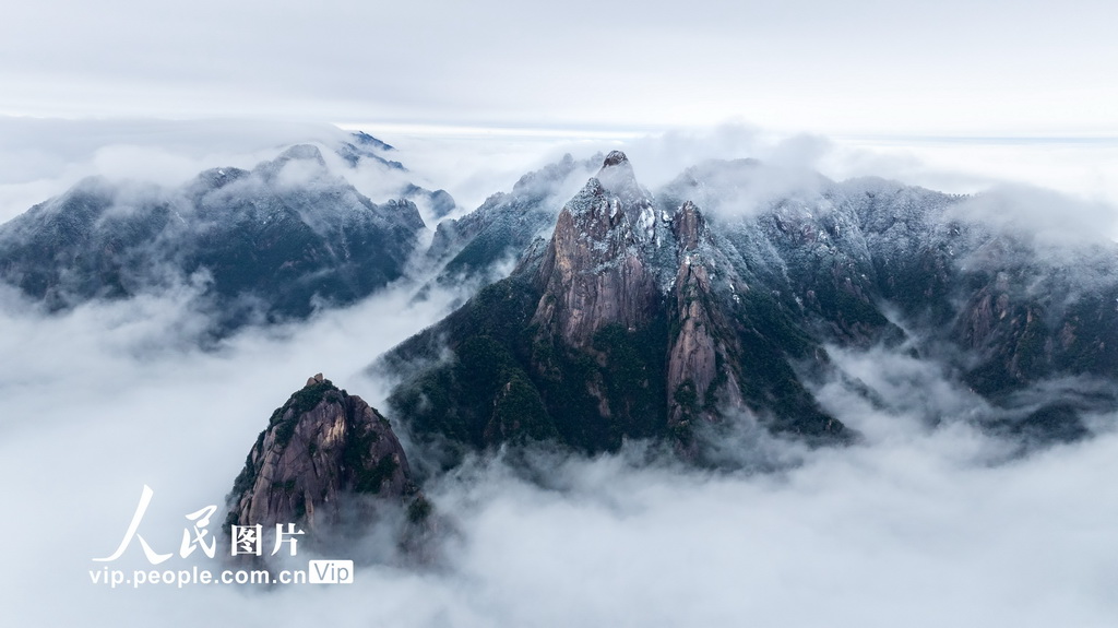2025年2月2日,安徽省池州市九华山风景区现云海景观。一座座秀丽的山峰,在云雾之中若隐若现,美不胜收。储成胜摄(人民图片网)