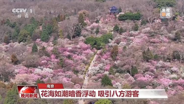 在南京,“我国四大梅园之首”的梅花山化身梅花的海洋,花海如潮,暗香浮动,吸引着无数游客前来踏青赏春。
