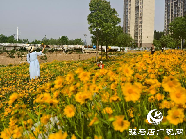 初夏时节,漫步在驻马店练江河畔,空气中弥漫着芬芳。成片的金鸡菊竞相绽放,吸引了大量的蜜蜂前来采蜜,蝴蝶也在花丛中翩翩起舞,一派生机盎然的景象,令人赏心悦目,许多市民在花海中观赏、拍照打卡。