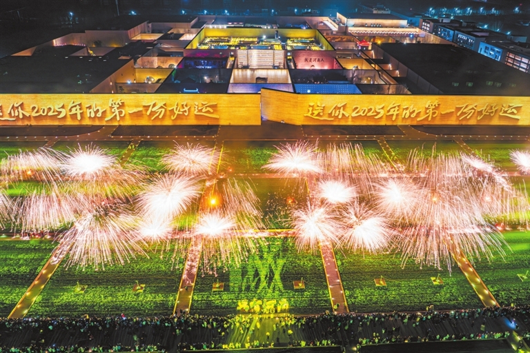 郑州“只有河南·戏剧幻城”百亩麦田上的打铁花表演蔚为壮观。 本报记者 聂冬晗 摄