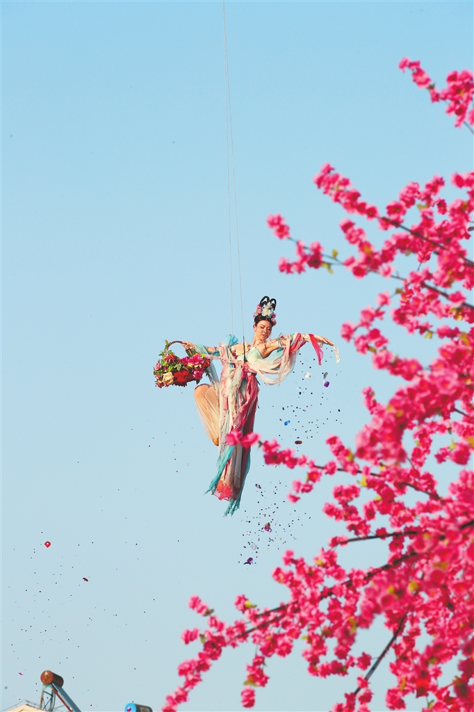 洛阳洛邑古城火爆全网的节目“天女散花”。 本报记者 王铮 摄