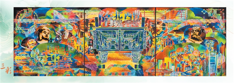 “如今的‘洛阳三彩’,分为三彩陶塑和三彩釉画。前者包括仿古三彩和三彩陶艺;后者则是在平面陶瓷板上,以釉色作画烧制而成,其中用三彩工艺制作的室内外大型装饰壁画称之为三彩环艺,是一个平面的、全新的画种。”郭爱和告诉记者,从世界首创的三彩腕表到长25米、高3米的上海世博会中国河南馆主题壁画《国之中城之源》,三彩这项技艺在“很小”与“很大”的维度间自由穿梭。当三彩腕表在瑞士巴塞尔钟表展引发抢购热潮,当釉色流动的环艺壁画装点现代建筑,三彩已演变为跨界融合的典型代表。