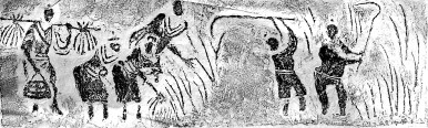 东汉收获弋射画像砖的拓印版(局部)