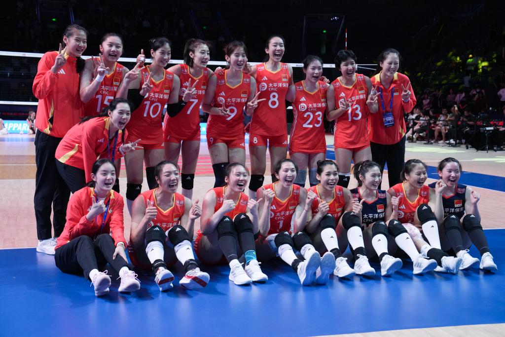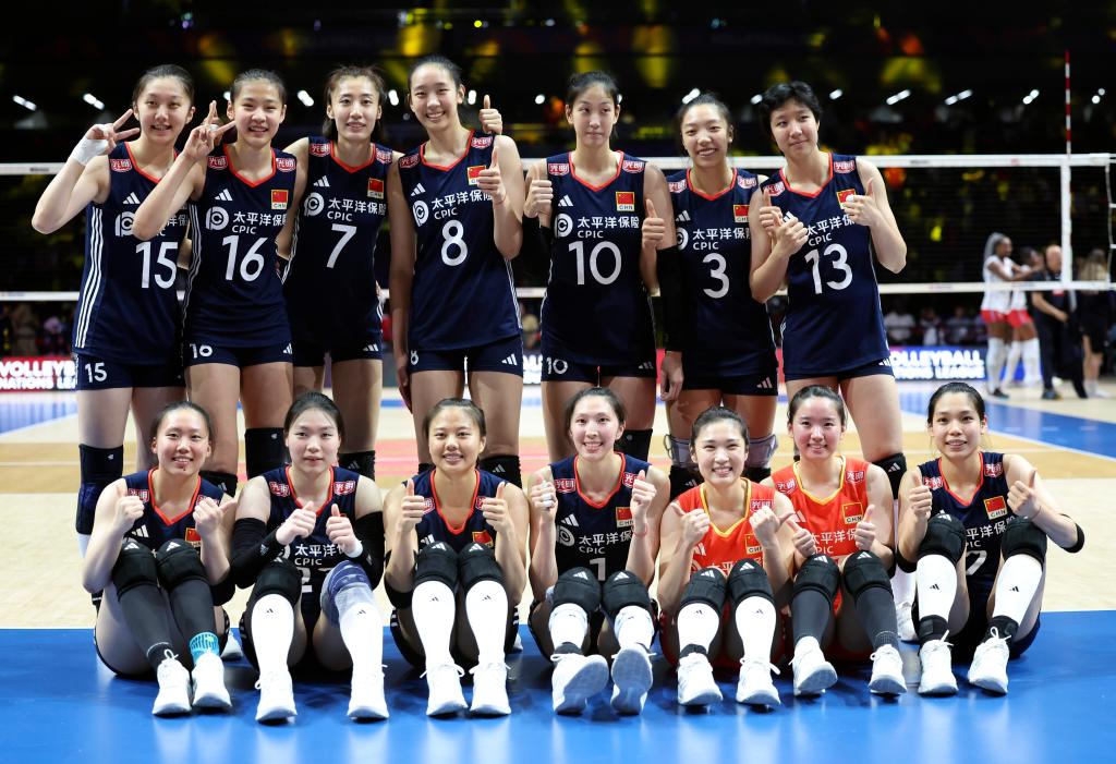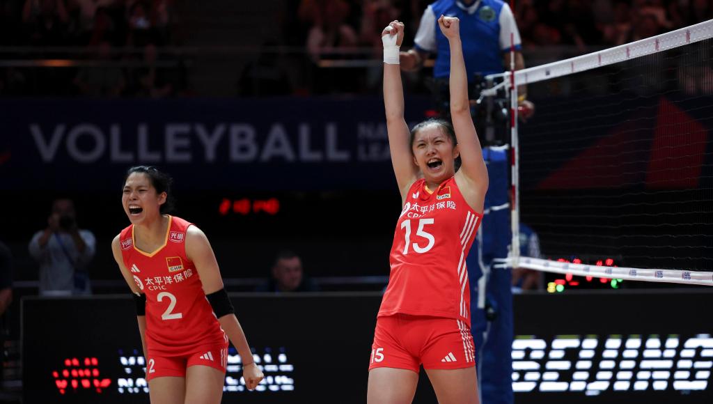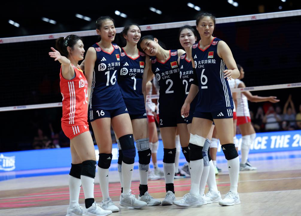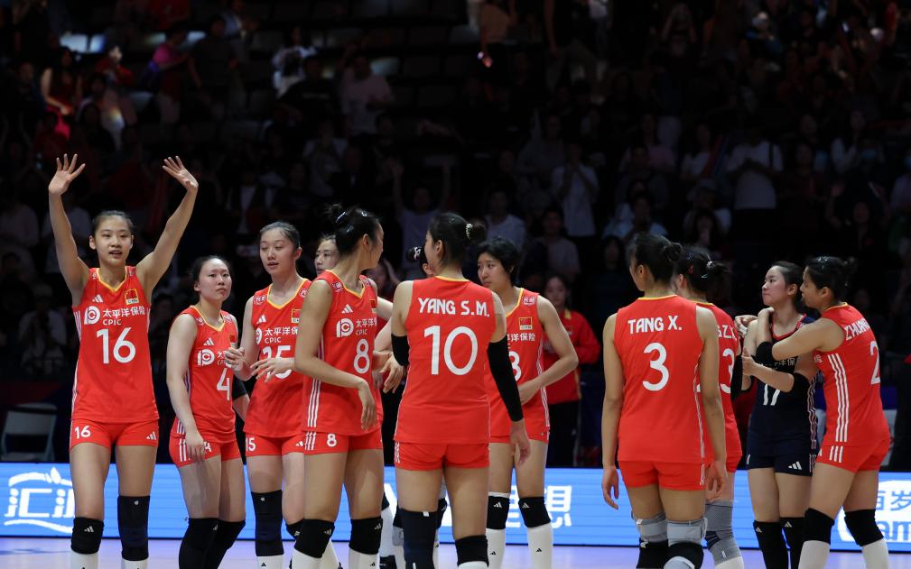王奥芊(中)庆祝得分。新华社记者 雒圆 摄