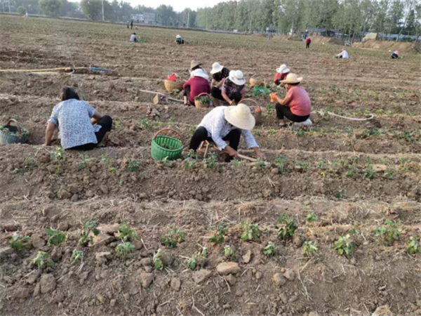 新蔡县津丝菊农业发展有限公司负责人段飞返乡创业,投资数百万元流转土地200余亩连片种植金丝皇菊和观赏菊,带动周边数十户贫困群众务工就业,主要从事菊花种植、田间除草、浇灌以及菊花采摘、漂洗等,育苗和采摘菊花的时候需要用工200余人,群众像呵护宝贝一样精心侍弄着菊花。