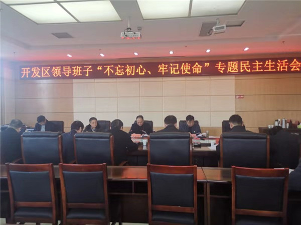 驻马店广电融媒体消息:12月2日,根据中央、省委关于“不忘初心、牢记使命”主题教育的部署要求,经市委第六巡回指导组同意,开发区领导班子召开“不忘初心、牢记使命”专题民主生活会。会议紧扣学习贯彻习近平新时代中国特色社会主义思想这一主线,聚焦不忘初心、牢记使命这一主题,突出力戒形式主义、官僚主义这一重要内容,把握守初心、担使命、找差距、抓落实的总要求,按照习近平总书记关于“四个对照”“四个找一找”的要求,检视问题,深刻剖析,严肃认真开展批评与自我批评,以自我革命精神推动贯彻新时代党的建设总要求,推动开发区领导班子牢记初心使命,进一步增强“四个意识”、坚定“四个自信”、做到“两个维护”。