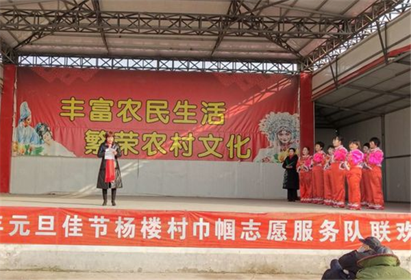 驻马店广电融媒体消息:凯歌高奏辞旧岁,莺歌燕舞迎新年。为了丰富广大群众在元旦期间的文化生活,让群众度过一个欢乐、祥和、喜庆、文明的节日。驻马店经济开发区杨楼村委积极谋划,精心部署,于12月30日下午,在村群众文化大舞台举办了“欢庆2020年元旦佳节杨楼村巾帼志愿服务队联欢汇演”活动。