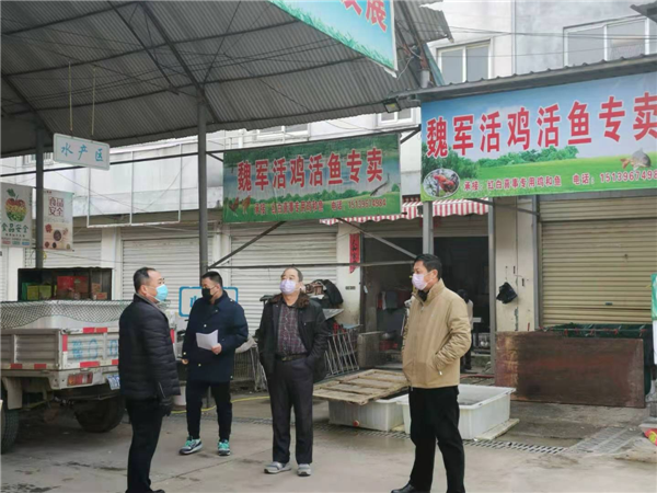 严格监管保安全。组织执法人员严查市场活禽交易、野生动物交易违法行为。1月26日(初二)以来,分局党组书记、局长匡斌同志多次带队到城区集贸市场、商场超市、药店、餐饮饭店进行督导检查,重点查看了活禽宰杀取缔关闭以及市场的健康防护情况,并对全区电影院、KTV、网吧、游乐园等人员密集娱乐场所督促全部关停。各辖区工商所人员按照分工,对辖区餐饮、食品、药店等单位进行全面检查,要求酒店、饭店严格执行从业人员健康管理制度,做好消毒工作,严格落实主体责任,督促设置提醒标语,提示进店顾客规范佩戴口罩,凡进店者均配合测量体温;发布《关于关停活禽交易市场禁止野生动物交易的通告》,以有效防控疫情。