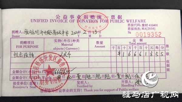截至2月13日上午,该校7000多名师生员工已累计捐款166618.55元,该笔款项已全额捐至驻马店经济开发区慈善总会。