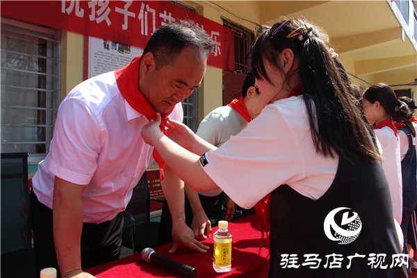 在开源办事处大魏庄小学,史爱民一行受到师生们的热烈欢迎。同学们唱起《中国少年先锋队队歌》,并为前来慰问的客人戴上红领巾。