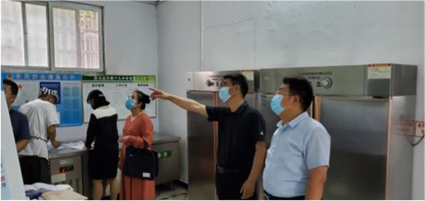 检查组一行重点对学校原辅料采购、食堂环境卫生、餐具清洗消毒、食品留样、食品安全管理、从业人员健康管理及培训情况等进行了全面细致的检查,详细询问食堂管理制度、陪餐制开展情况。