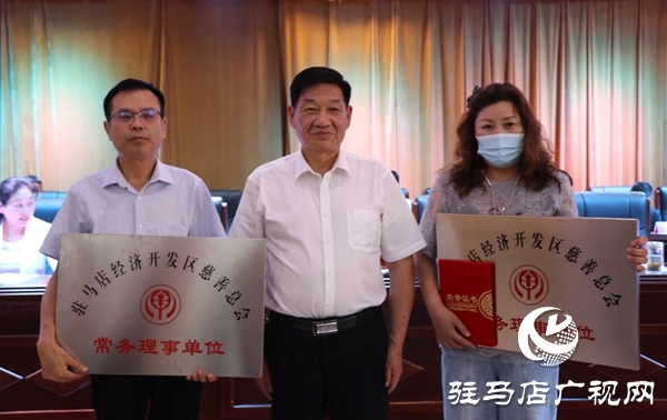 经济开发区慈善总会会长李如意为增补的常务理事单位授牌