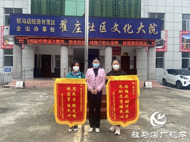 10月28日,赵梦诗和王艳芳两人为翟庄居委会送来锦旗,感谢她为百姓办实事、解难题。一面小小的锦旗不仅体现了翟庄社区干部与群众在疫情防控中的患难真情,更是对社区干部防疫服务保障工作的充分肯定。