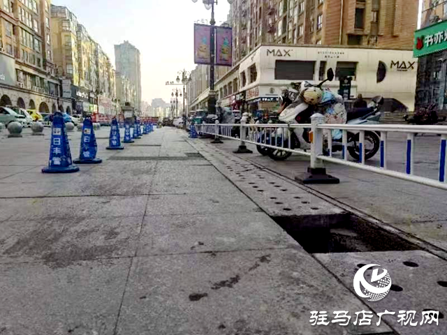 12月25日,驻马店市智慧城市服务中心采集员在日常巡查中,发现玖隆茂商业街道路两侧的沟槽盖板有破损、塌陷的问题,立即在现场设置警示标识,提醒路人注意安全,并拍照上传至市智慧城市服务中心立案派遣。