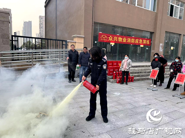 12月29日下午,驻马店市公安局经济开发区分局关王庙派出所联合关王庙乡综治中心、众兴物业等部门开展消防安全演练活动。
