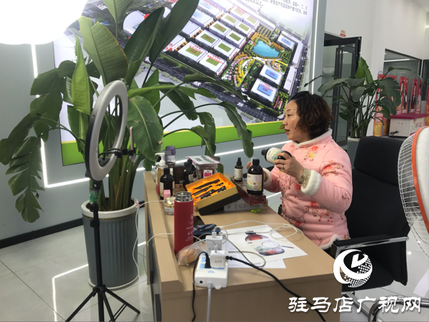 直播间里,公司的产品主播在直播带货,主播正在卖力地介绍产品的卖点和发货时间,现场回复问题,气氛火热。