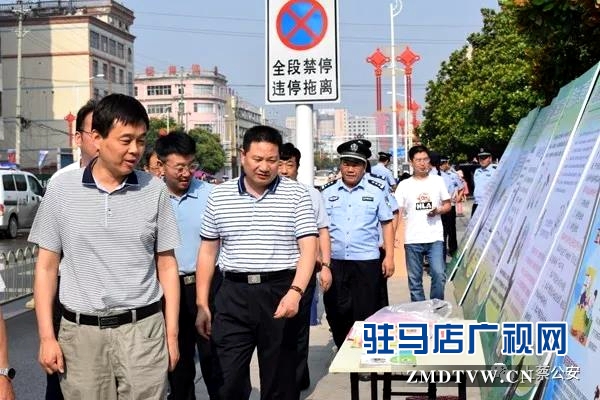 上蔡县领导及县禁毒委、禁毒办相关负责人观看展览,并向过往群众解答问题。