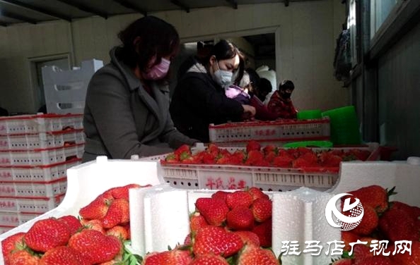 驻马店广电融媒体消息:(通讯员 肖喜锋 张继博)日前,上蔡县东岸乡艳歌种植专业合作社塑料大棚内正值草莓收获的季节,当地的妇女群众正忙着采摘、分拣、包装草莓果,备齐发往北京新发地、郑州万邦等果品批发市场。