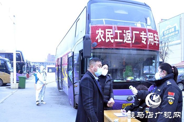 2月25日下午,驻马店市客运公司上蔡县分公司(老汽车站)第一辆运送20余人“农民工返岗专车”在县交警大队警车引导、民警护送下,顺利从周驻南高速上蔡西站安全驶上高速。